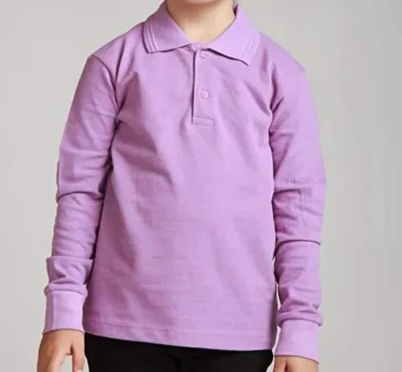 · Eflatun renkli, polo yaka kısa ve uzun kollu tişört,